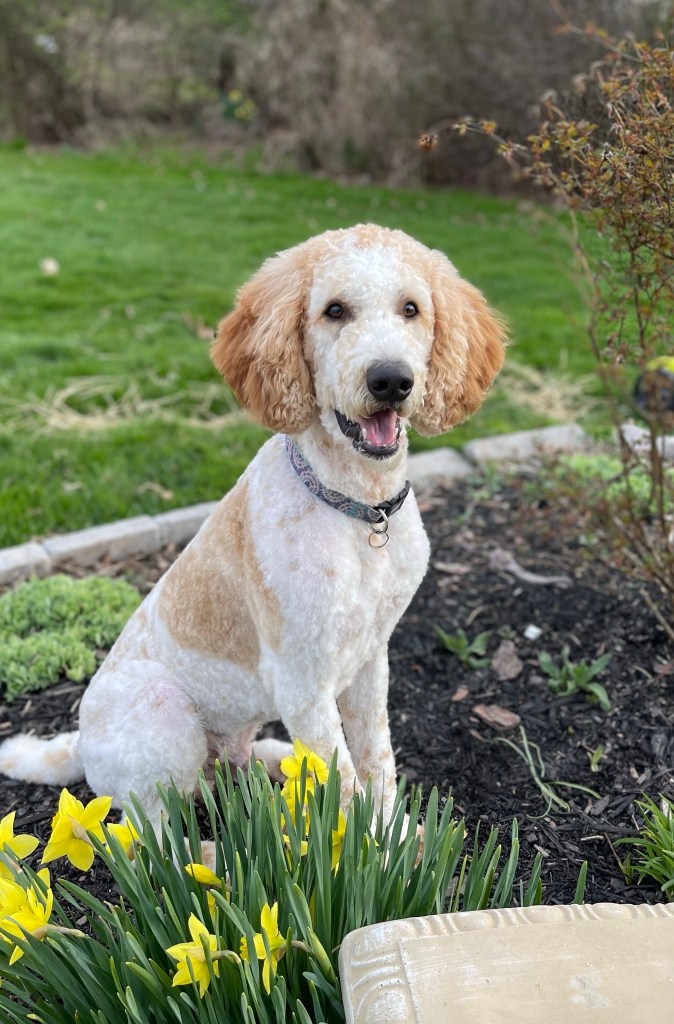 Murray is an AKC registered male Standard Poodle. He is a cream and apricot parti poodle. He is very smart and has lots of energy. He loves to be the king of the pack.